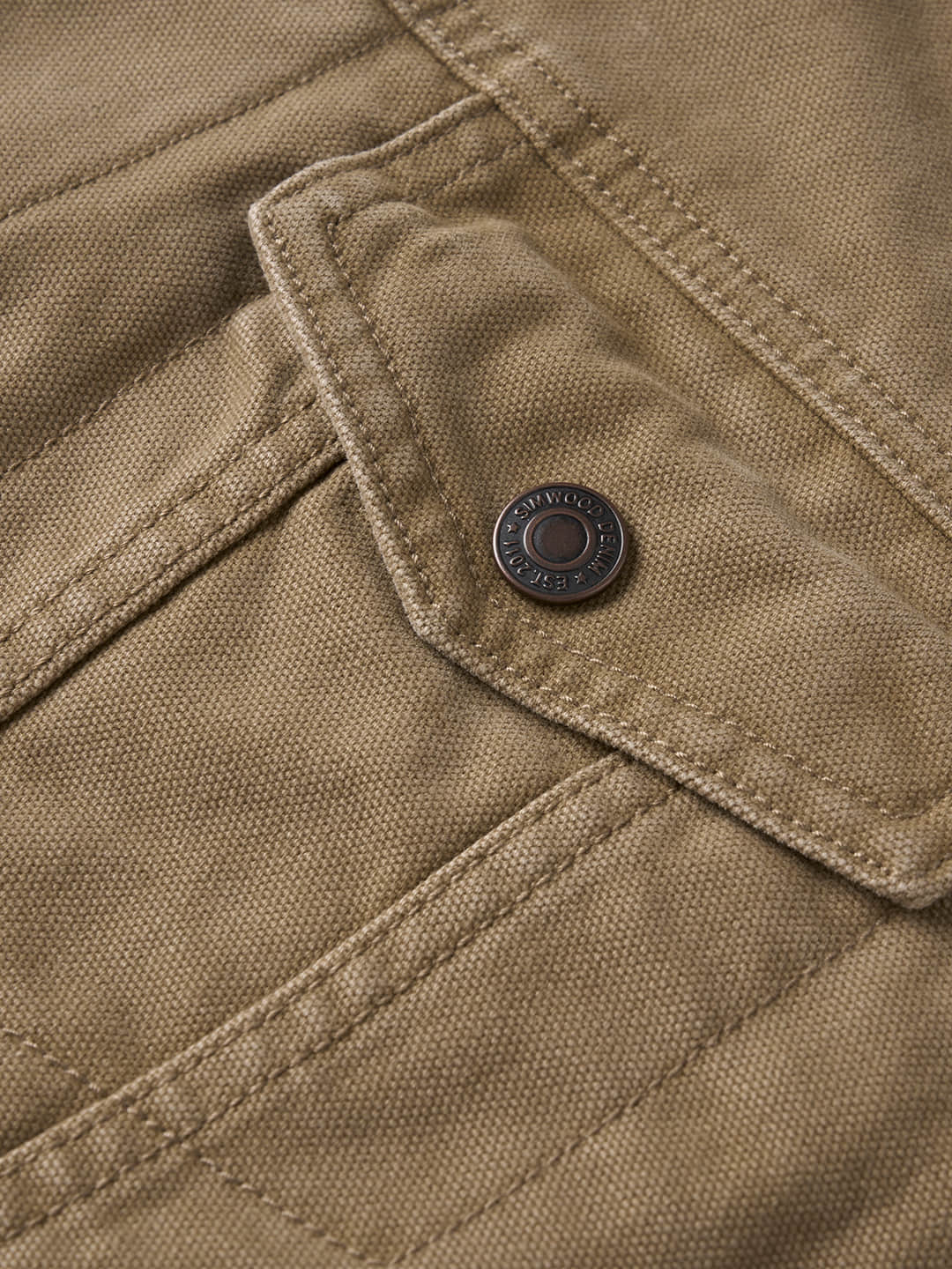 Experience durable warmth with the 11.8oz Vintage Canvas Sherpa Lined Jacket. Crafted from robust washed vintage canvas, this trucker-style jacket features a soft sherpa lining that provides exceptional insulation. Its sturdy construction ensures long-lasting wear while maintaining comfort and classic rugged style—ideal for layering in cooler weather or outdoor work.