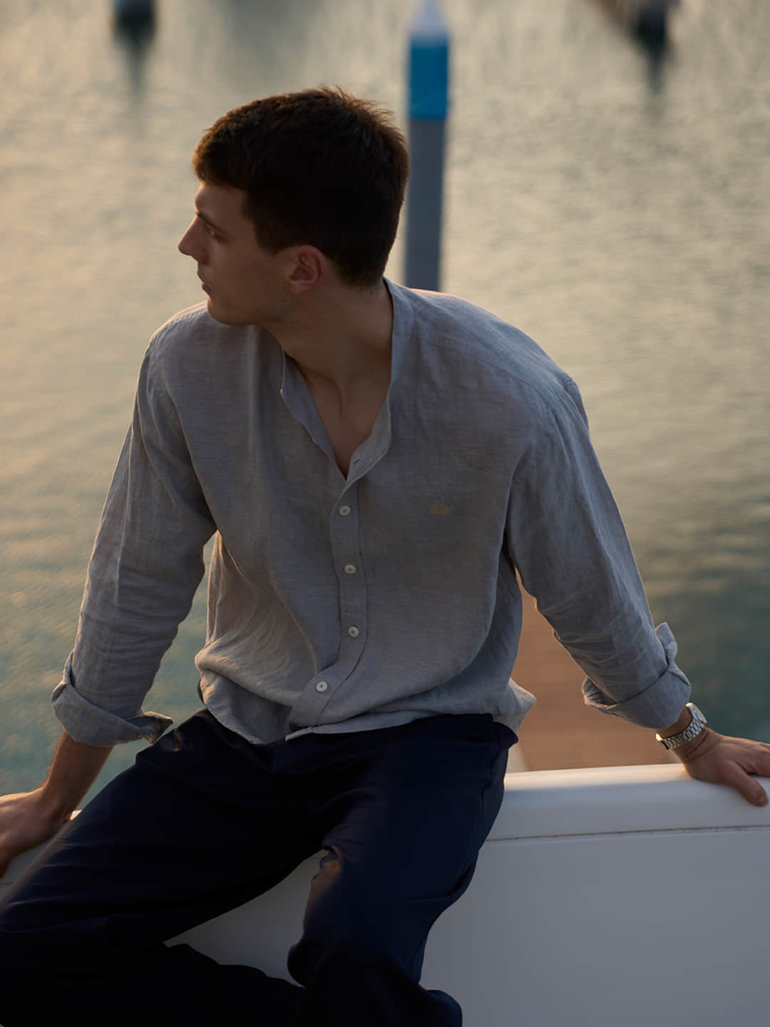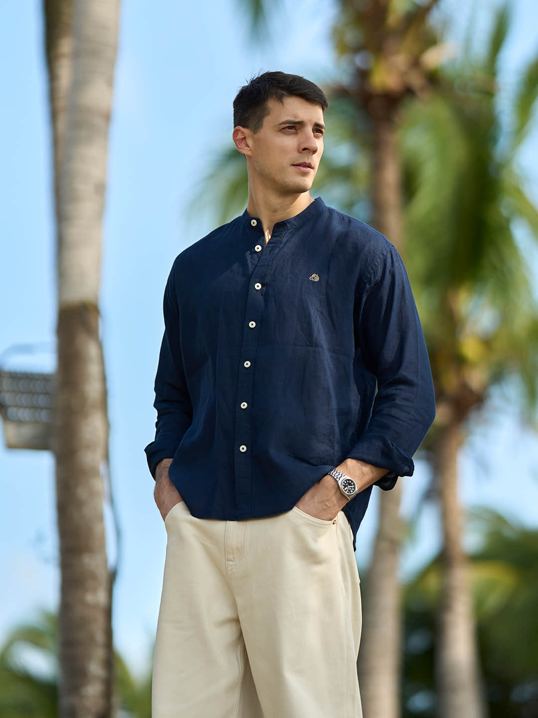 Crafted from premium 21-count natural linen, this shirt delivers effortless summer style with breathable comfort. The relaxed fit and distinctive Chinese stand collar create a modern, casual aesthetic perfect for beach days and warm-weather layering. Expertly washed for a soft, lived-in feel that improves with wear. Ideal for those seeking understated luxury in everyday essentials.